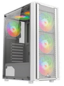 El gabinete viene integrado con un sistema de iluminación ARGB compuesto de 4 ventiladores aRGB, satisfaciendo los usuarios que buscan flujo de aire, estética, y funcionalidad sin nececsidad de una gran inversión.